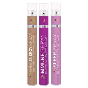 Recharge, relax and restore with three proven oral sprays; Cafe Energy, Immune & Sleep. Get instant natural 'Zen' energy to help you focus and relieve stress with Cafe Energy. Use Sleep  spray to help you unwind, sleep well and reboot. Spray Immune spray every day to keep your immune system pumping.