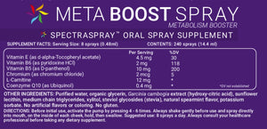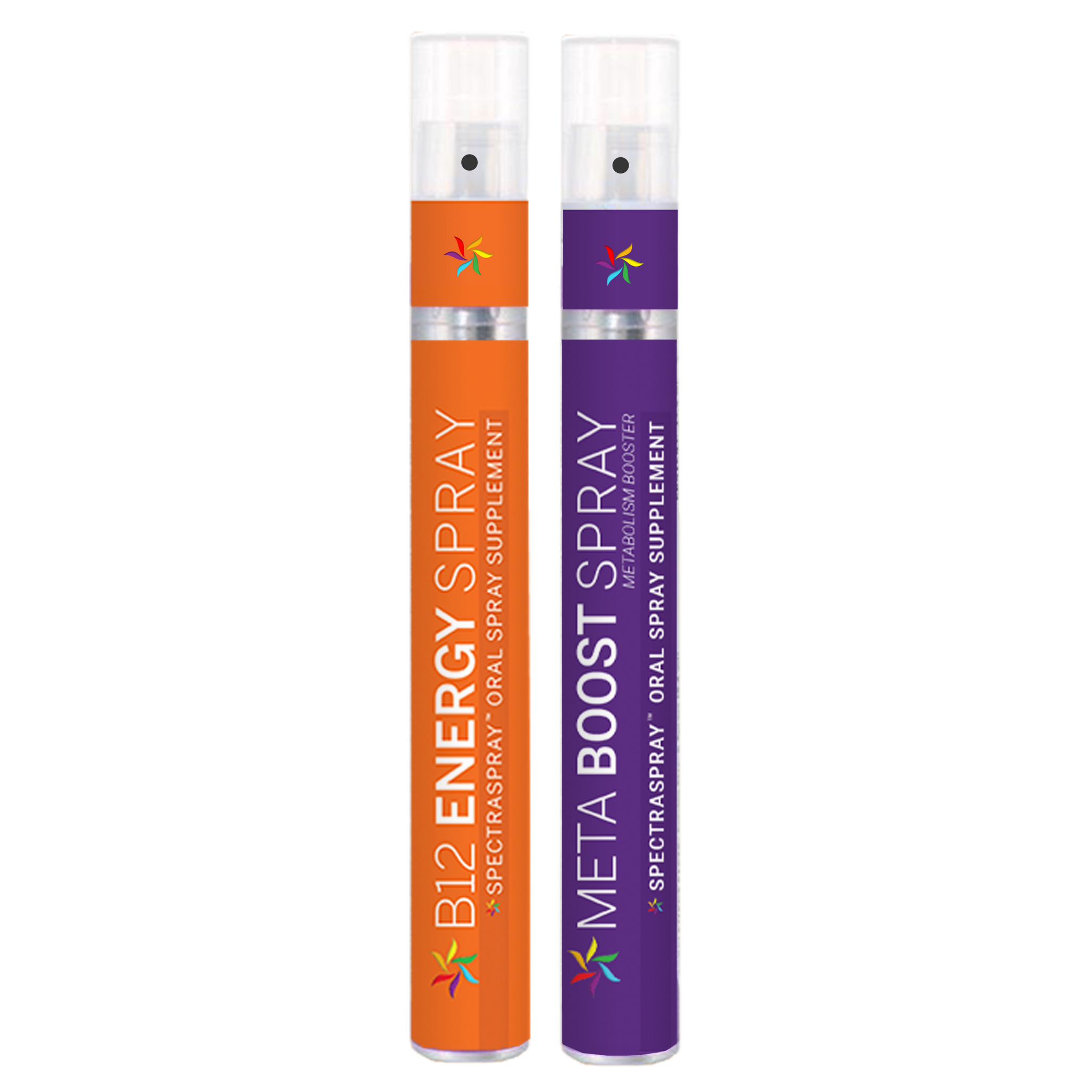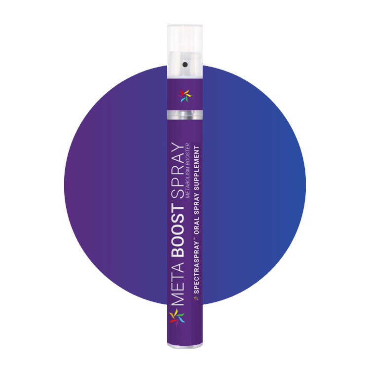 SpectraSpray's new MetaBoost oral spray supplement is  a one-of-a kind metabolic booster  formulated by our spray vitamin expert chemist to support weight loss, curb cravings, support energy production and help regulate insulin + healthy blood sugar levels, naturally and without caffeine or stimulants!